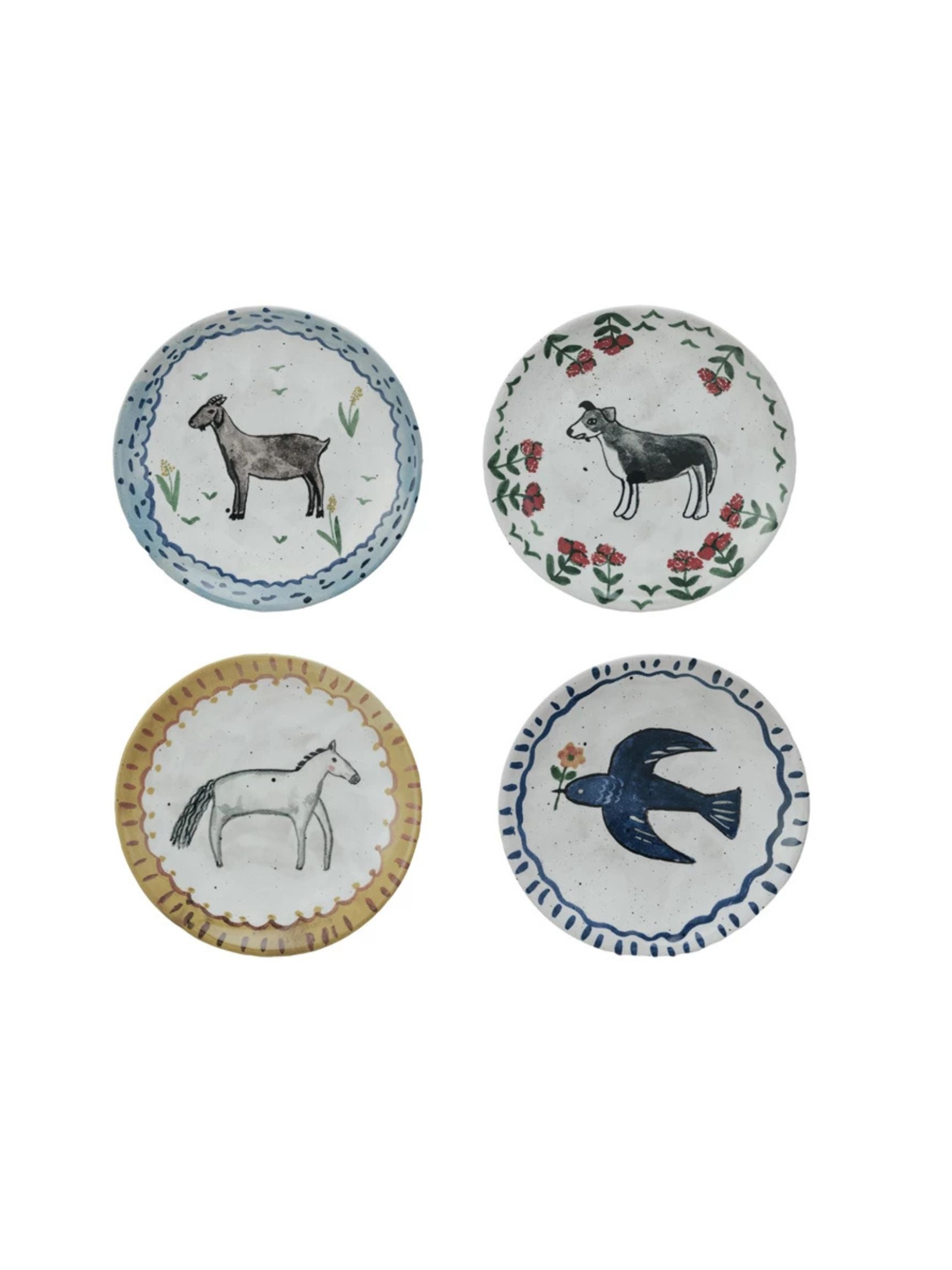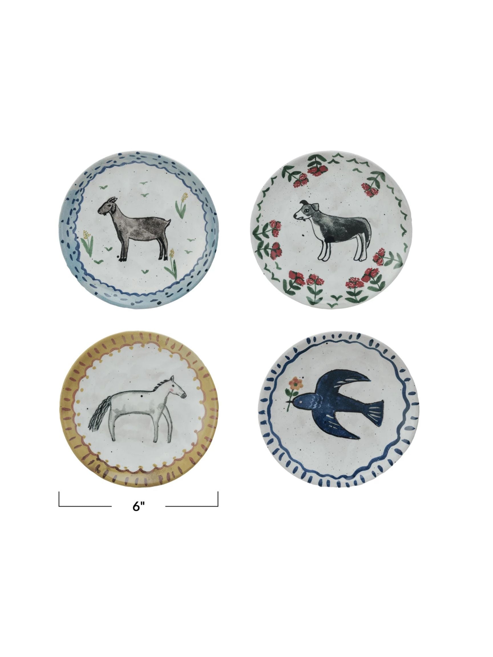6" Round Hand-Painted Stoneware Plate w/ Animal Image