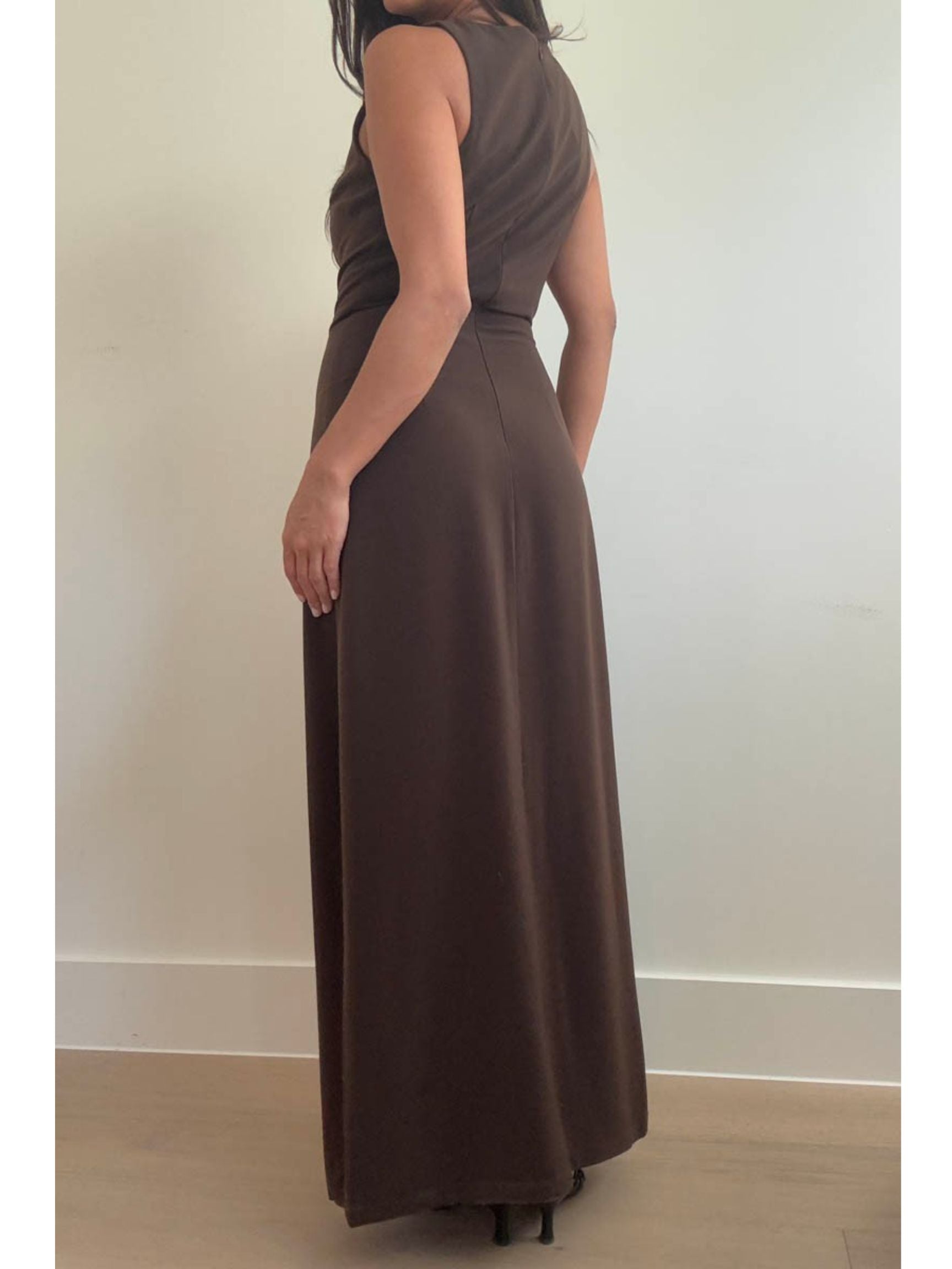This dress offers a sleek, body-hugging silhouette that flatters your natural curves. The sleeveless design keeps it modern and clean, while the dramatic side high slit adds movement and allure with every step. Ideal for evening events, special occasions, or elegant nights out.