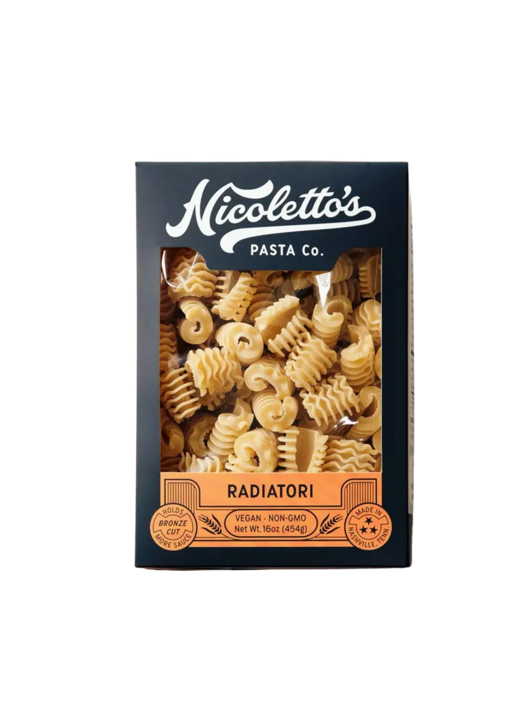 This unique bronze cut pasta has a unique “radiator” shape that is full of texture, perfect for soaking up the most flavorful and hearty sauces. Nicoletto’s Pasta Co. Bronze Cut Radiatori is crafted in small batches, meticulously slow dried and cooks within 10-12 minutes.