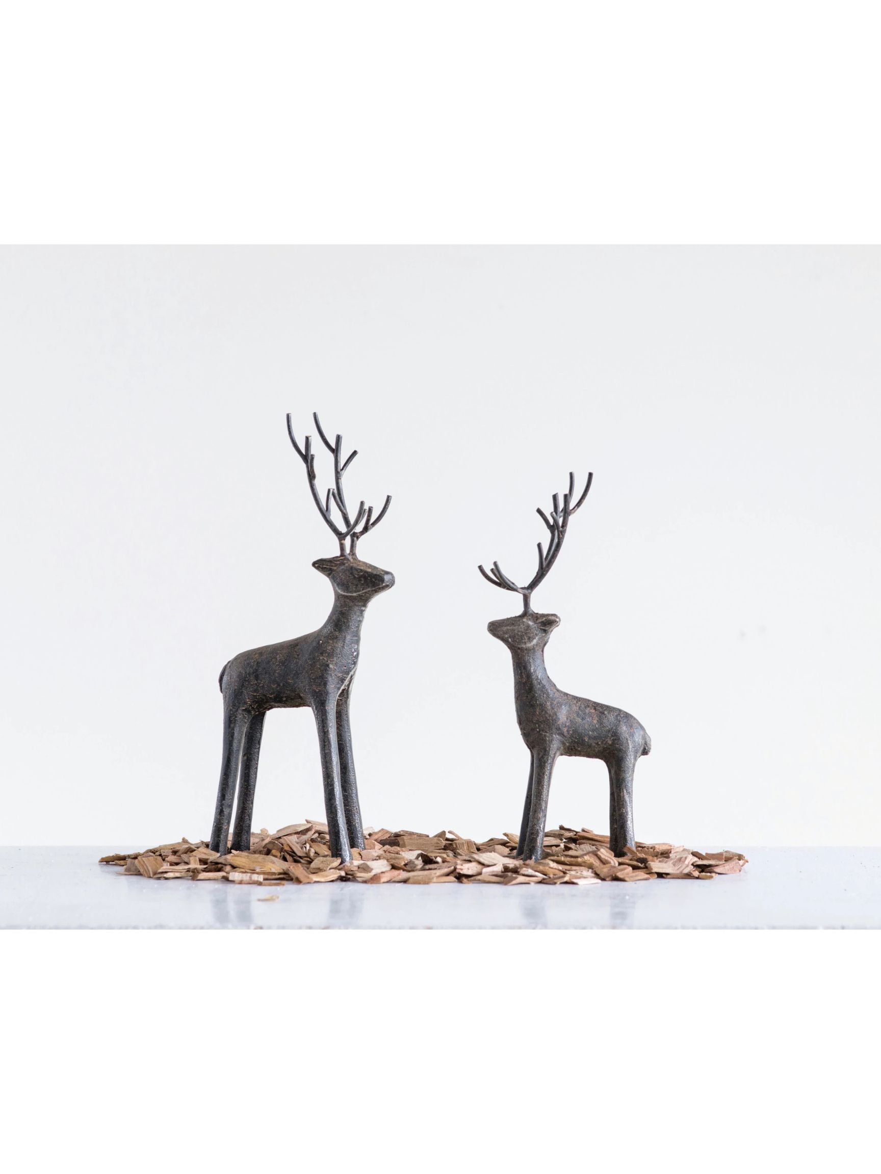 This cast iron deer figurine with black finish can be the perfect addition to this season's holiday decor. Place on a table or shelf or add it to a centerpiece for a bit of extra flair. Mingle with other holiday figurines like a snowman, Santa or miniature buildings.