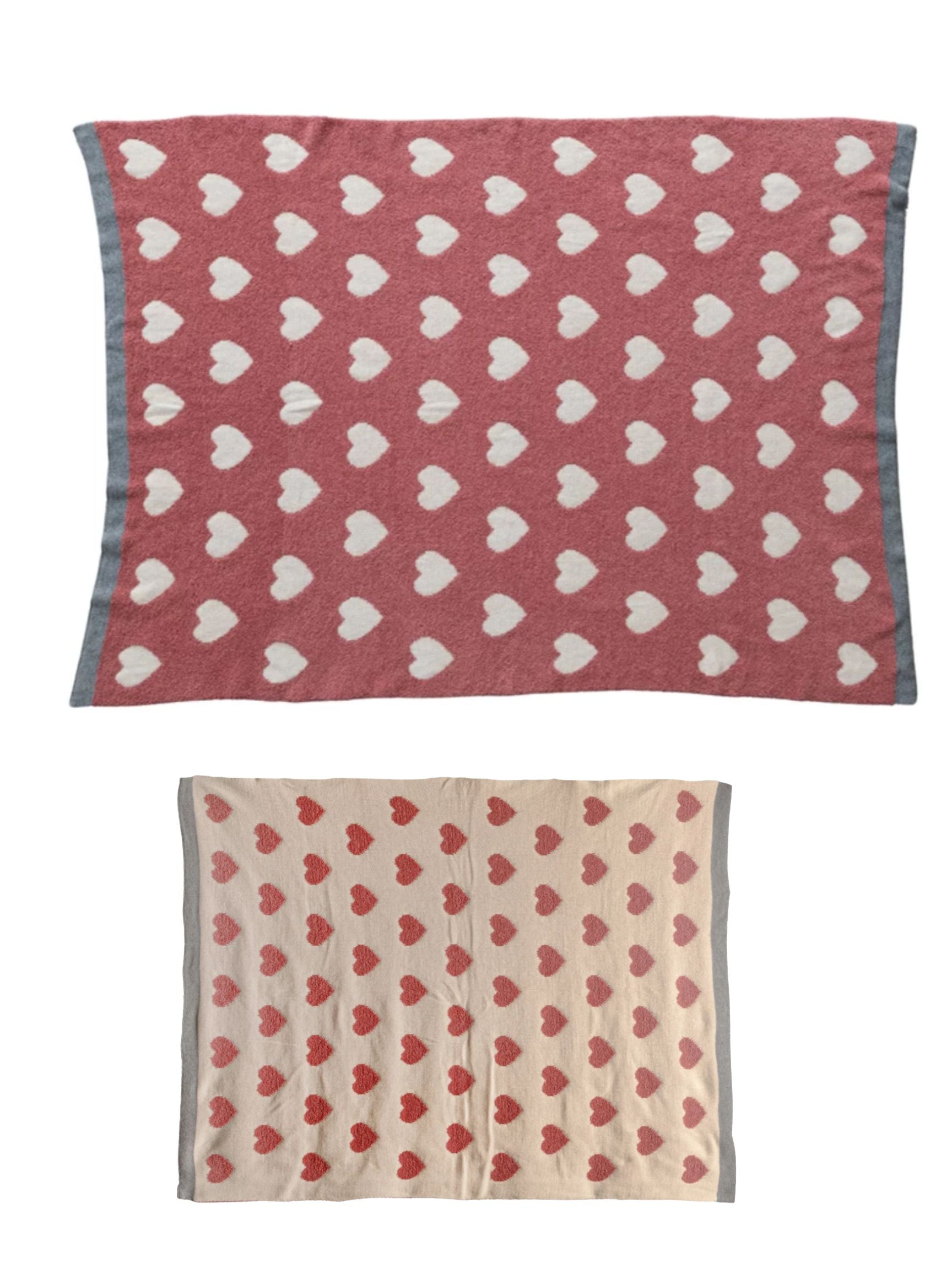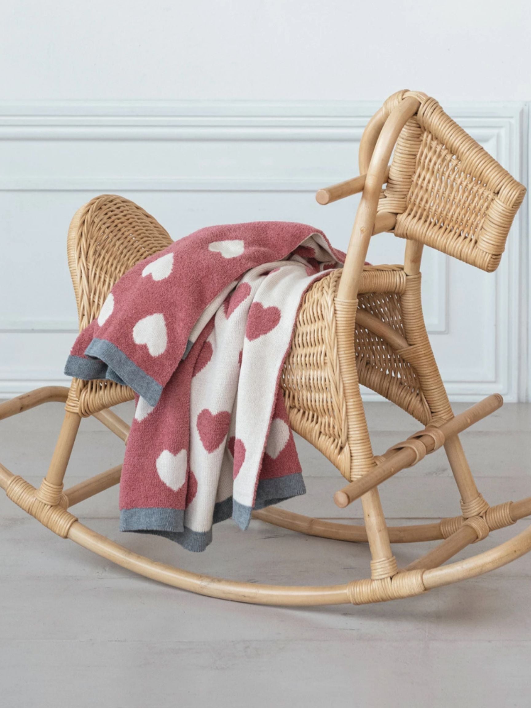 Cotton Knit Chenille Baby Blanket w/ Hearts