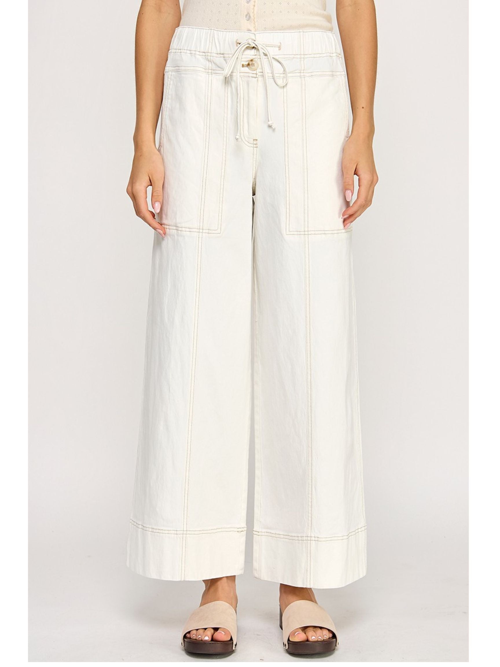 Cotton Twill Pull On Wide Leg Pants