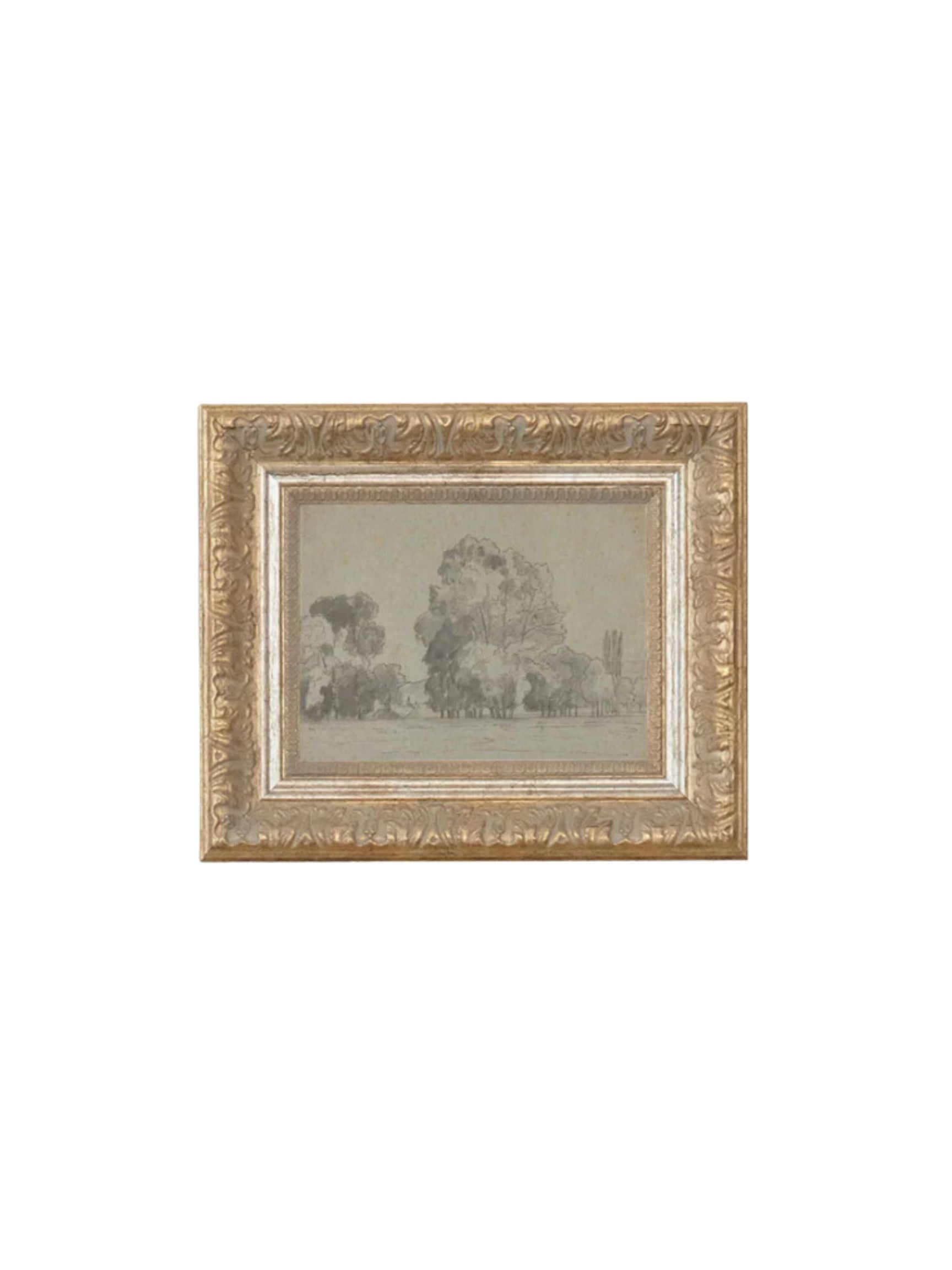 This vintage landscape sketch is printed on raw canvas and placed in an antique frame for an authentic, timeless look.