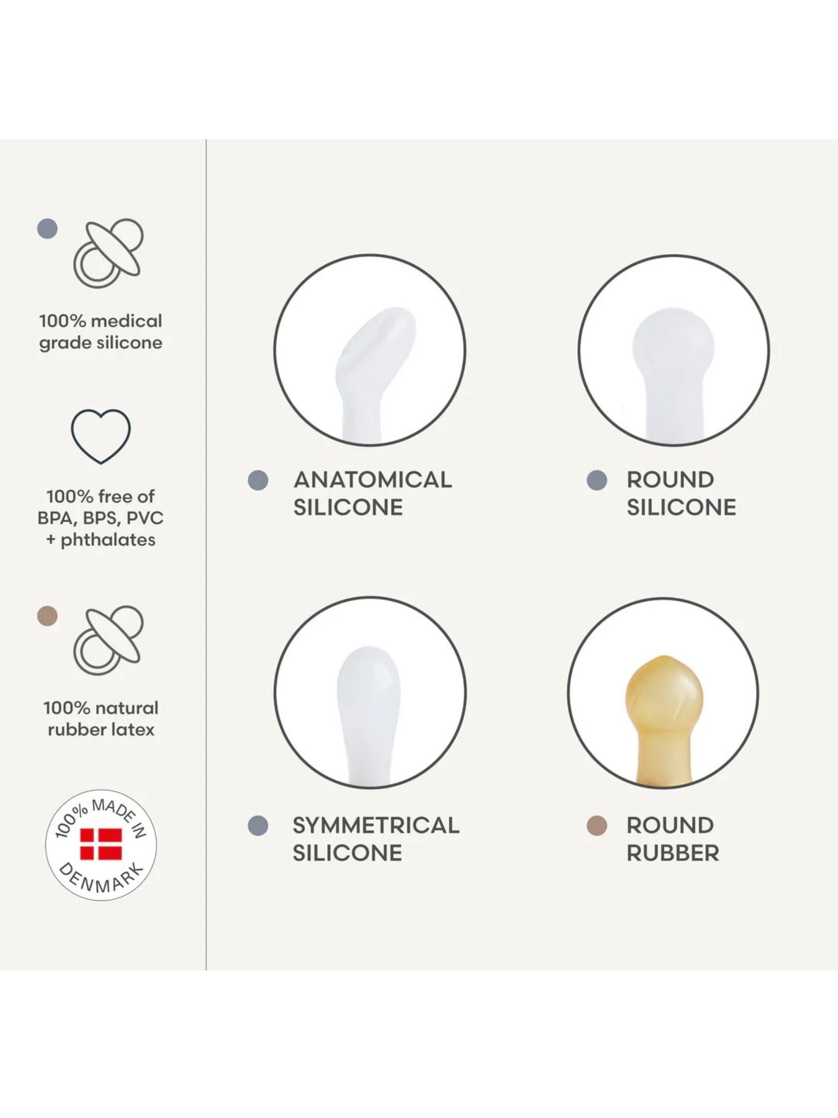 - 100% natural rubber latex and medical grade SilkySoft™ silicone nipples