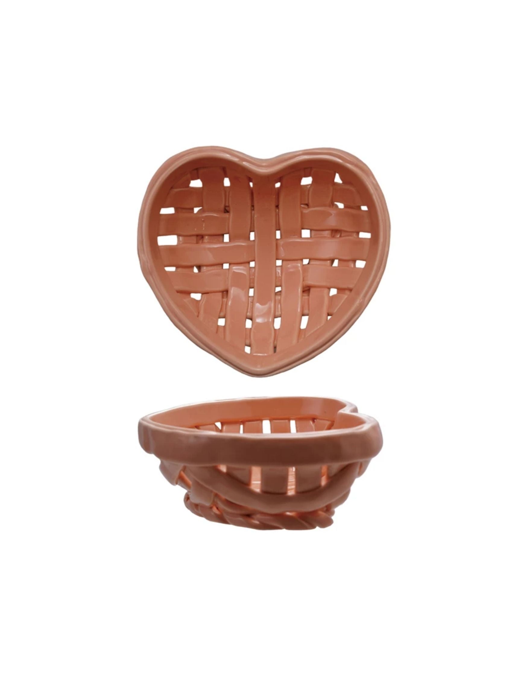 Handmade Stoneware Woven Heart Shaped Basket