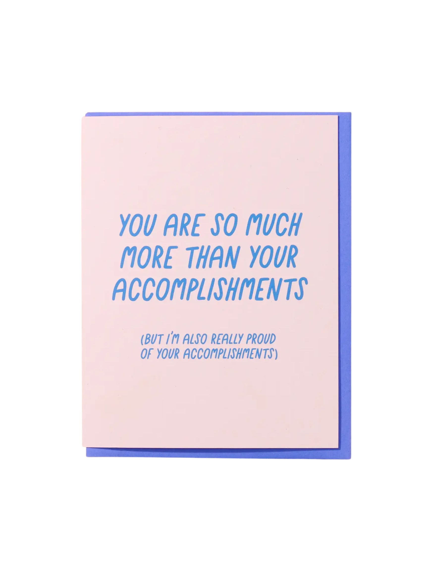 Card reads, "You are so much more than your accomplishments (But I'm also really proud of your accomplishments)"