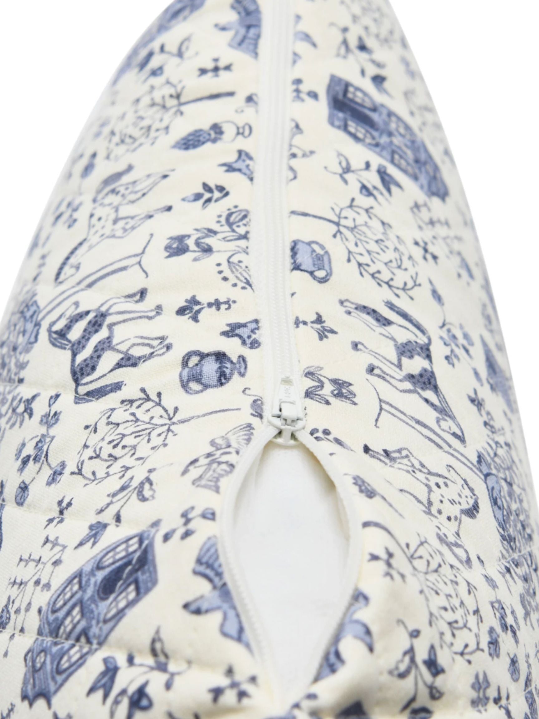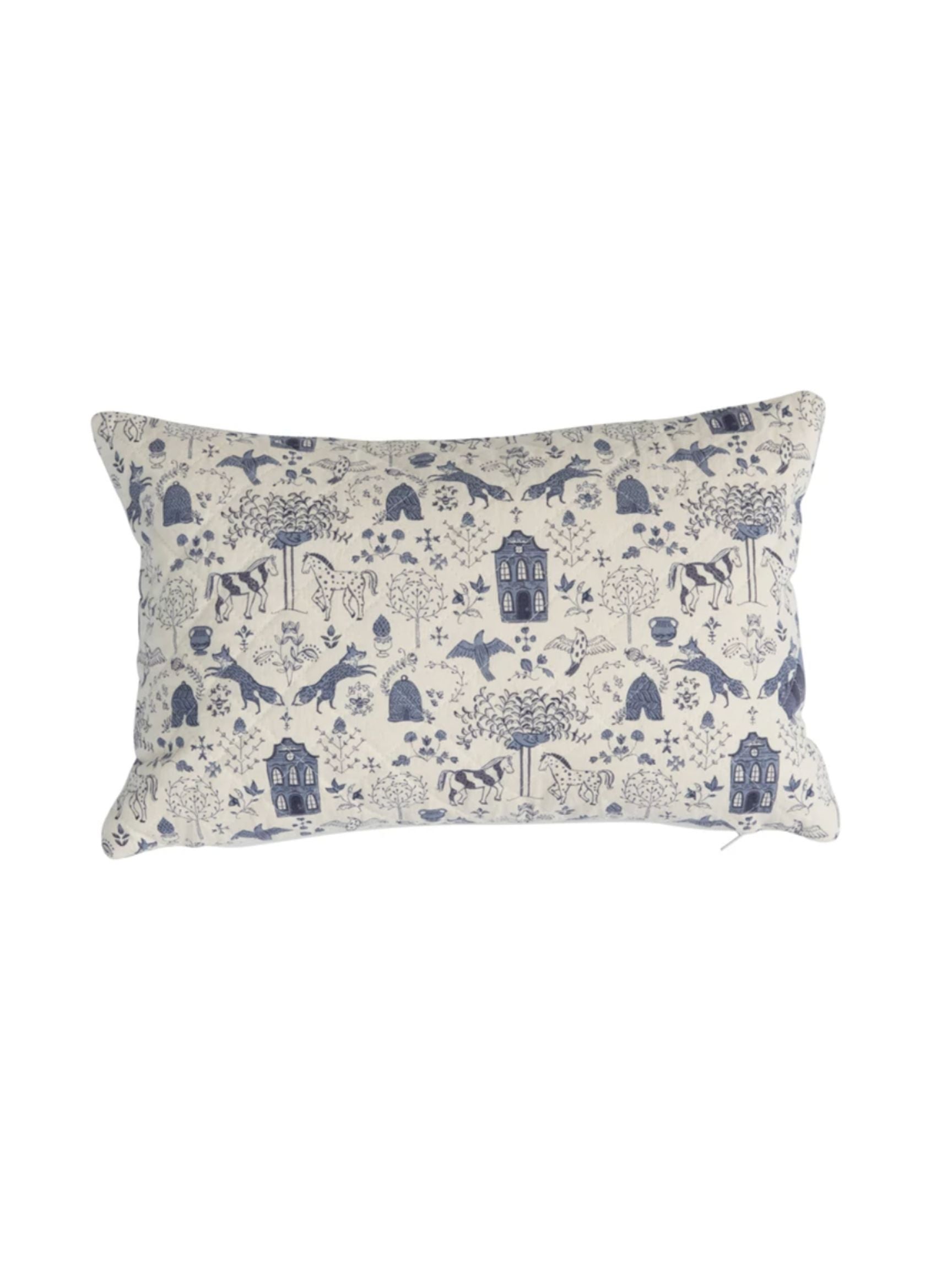 Quilted Cotton Lumbar Pillow with Blue Pattern
