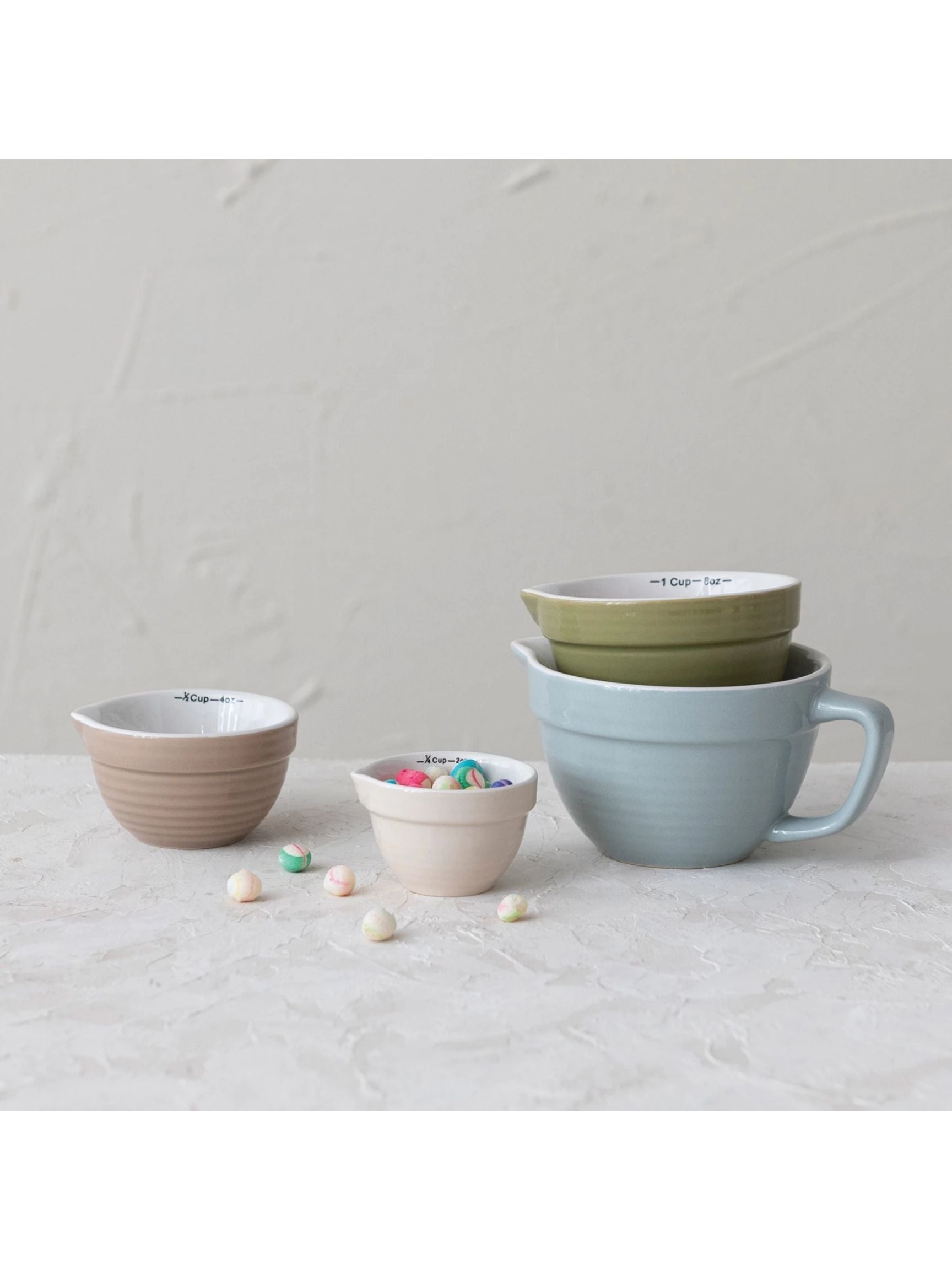 Stoneware Batter Bowl Measuring Cups - Set of 4